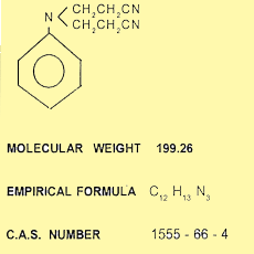 | SYNONYMS | i) N, N-BIS-(2-CYANOETHYL) ANILINE ii) PROPIONITRILE, 3,3-(PHENYLIMINO)-BIS |