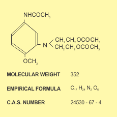 | SYNONYMS | i) ACETAMIDE N-[3BIS(2ACETOXY ETHYL) AMINO]-4 METHOXY ACETANILIDE ii) 4-ACETAMINO-2-BIS (2-ACETYLOXY ETHYL)-AMINO ANISOLE iii) 4-ACETAMINO-2-N, N-BIS (ACETOXY ETHYL)-AMINO ANISOLE |